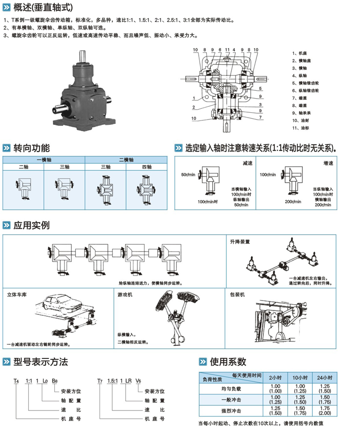 結(jié)構(gòu)、特性與反應(yīng): 機殼:高剛性FC-25鑄鐵鑄造;齒輪:齒輪采用優(yōu)質(zhì)高純凈度合金剛20CrMnTiH滲碳淬火,及研磨而成;主軸:軸類采用合金剛調(diào)質(zhì)、高懸重負荷能力;軸承:配備重負荷能力的滾錐軸承;油封:雙封唇片的油封、兼具防塵及防漏油的能力;潤滑:適當(dāng)?shù)臐櫥褪褂,可以發(fā)揮轉(zhuǎn)向機的效率,并提高其運轉(zhuǎn)的壽命。a. 初期使用二周或100-200小時,為初摩耗期,這之間可能有少許金屬摩耗粉粒,請務(wù)必清潔內(nèi)部,并換新潤滑油。b.長期使用時,每半年-一年或1000-2000小時更換一次潤滑油。 潤滑油種類:本產(chǎn)品潤滑油采用中國石油全效齒輪油90-120度,低轉(zhuǎn)速、輕負荷條件,建議采用全效齒輪油90度,重負荷、高溫的條件,建議采用全效齒輪油120度。